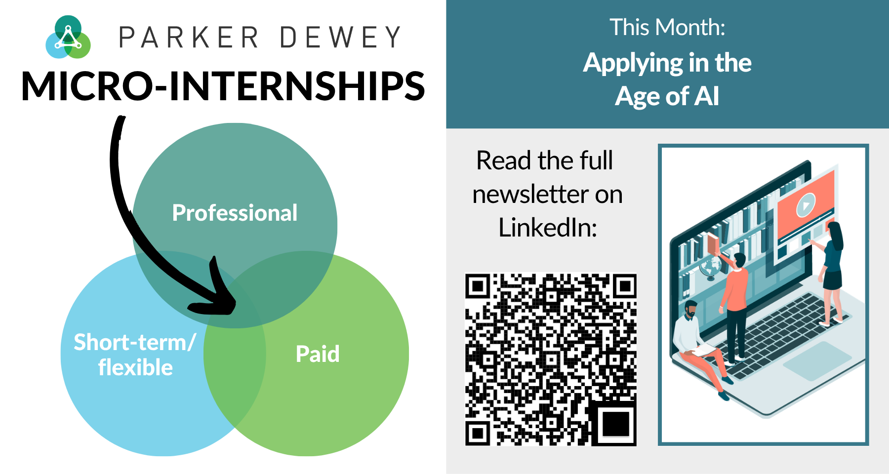 Share this month’s student newsletter to help students understand how to thoughtfully use AI when applying to Micro-Internships. It covers when AI can support stronger applications and when students are better off relying on their own voice, preparation, and effort. |