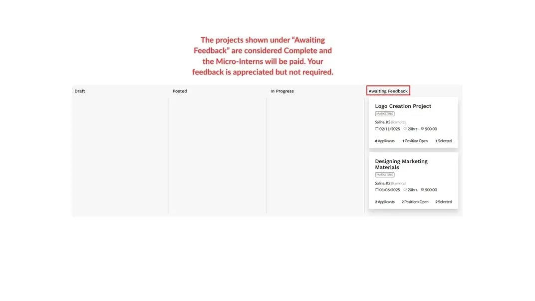 Congratulations on a completed assignment! Once your Contractor has finished your project, complete the following steps through the Dashboard to close out the project and ensure the contractor is paid.